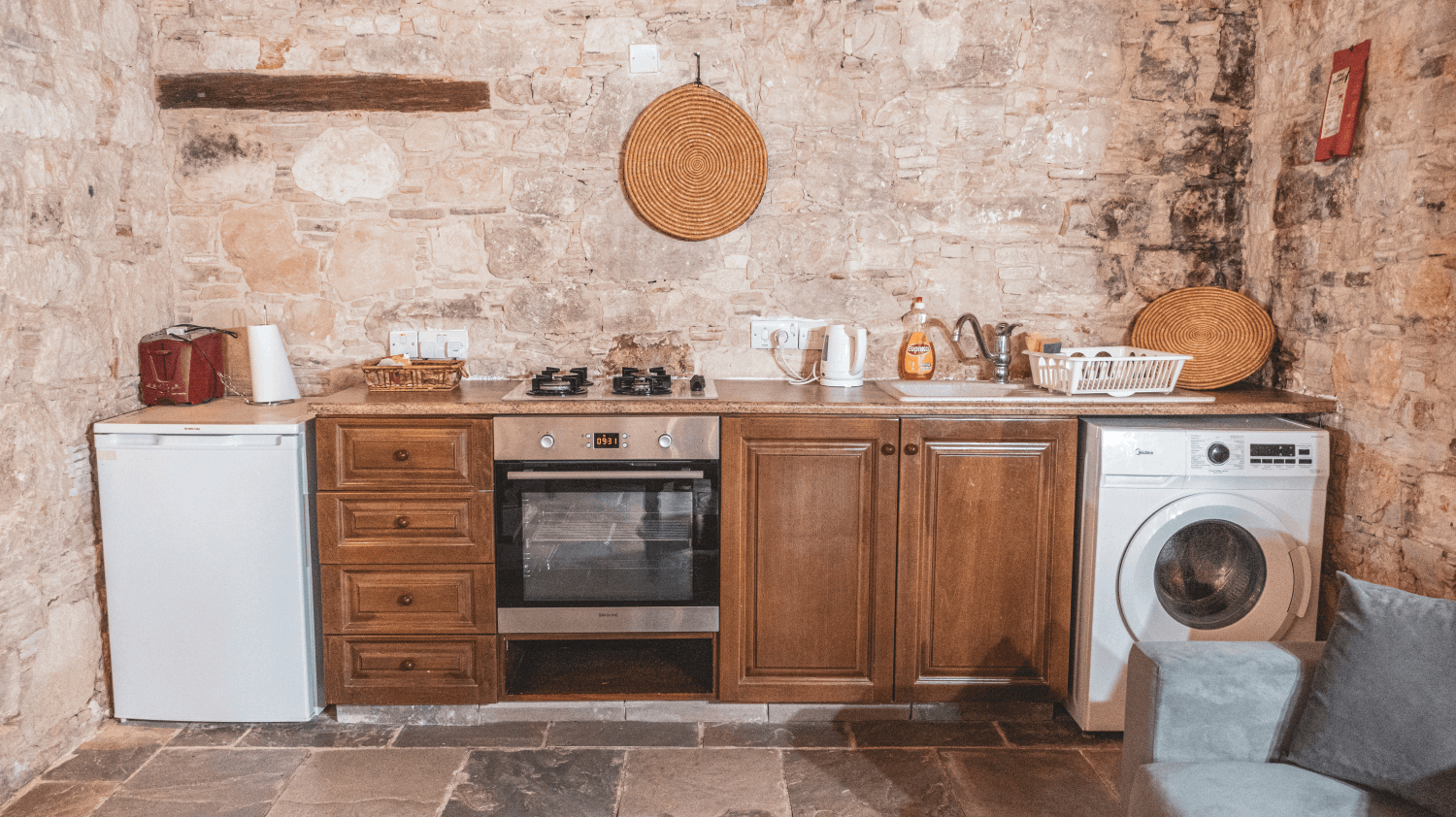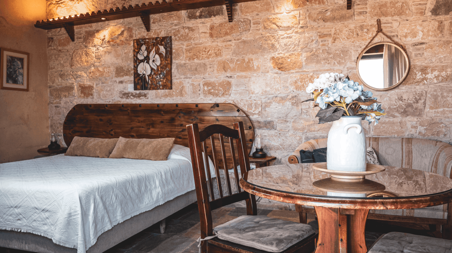 Agrovino studios has 7 separate accommodations, each with its own unique character. Some of them can accommodate 2 people and others up to 5 people. Everything is within walking distance of each other and the restaurant as well. All accommodation has kitchen, heating and internet.