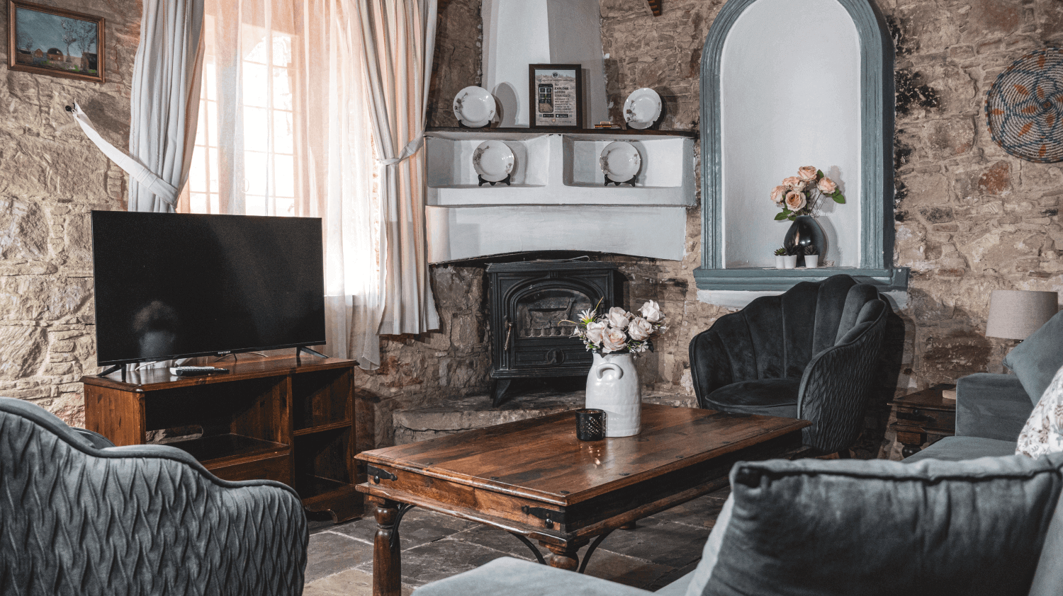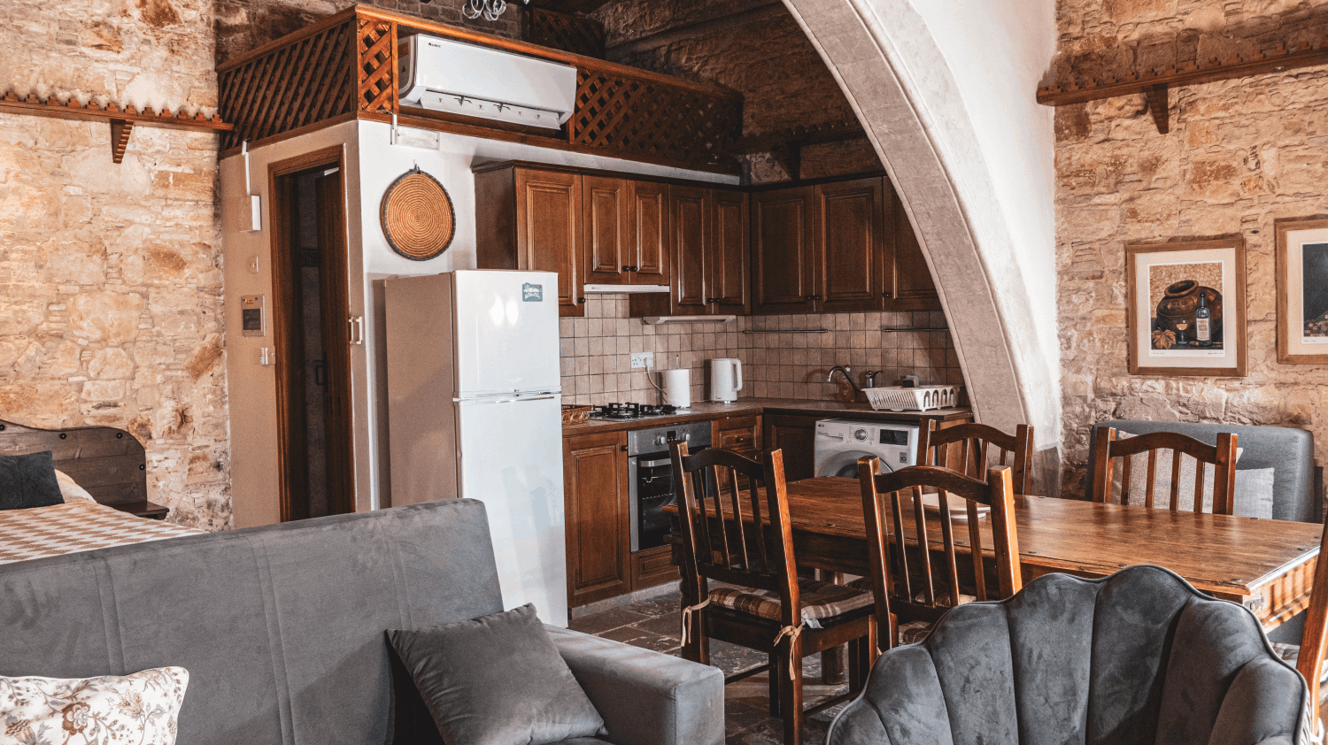 Boasting a fireplace in the seating area, this tastefully decorated studio comes with stone walls and earthy tones. A well-equipped kitchen with kitchenware, and a dining table. Free WiFi is available.